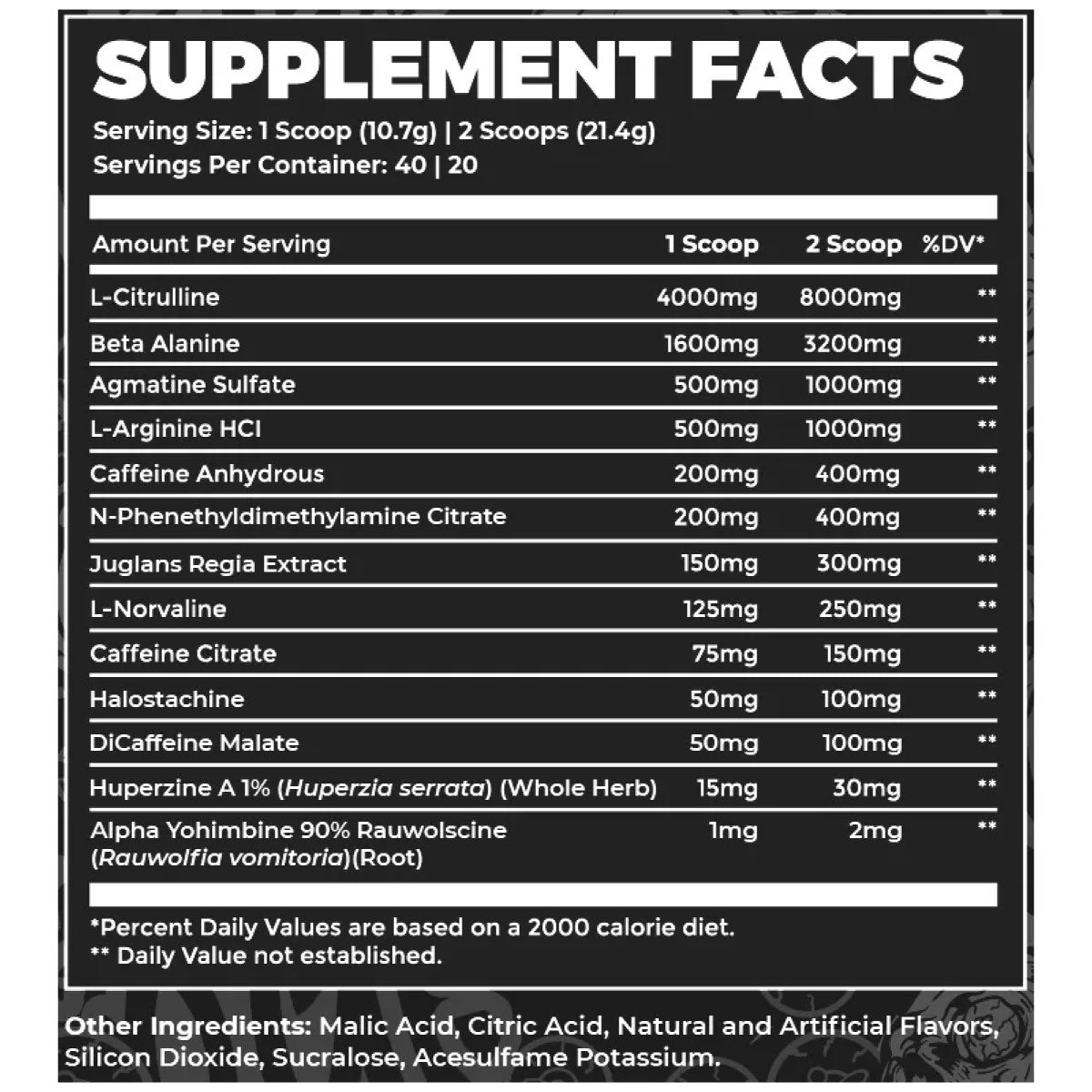 This is not your daily pre-workout! It's extremely potent formula designed for people who wants to get insane energy, laser sharp focus and extreme pump!