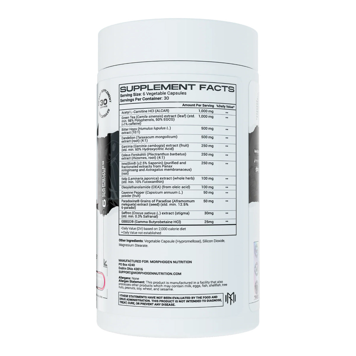 This formula is loaded from the diuretic in the dandelion root, to the insulin controlling effects of innoslim, to the thermo effects of capsimax and gp and no stims!! Giving this 4 stars because I either received an older formula or a reformulated bottle. I ordered this because I thought I was also getting fucoxanthin and I got a different extract instead. Morphogen always hits though. Shipped on a Wednesday received on Saturday; shipping is always on point!
