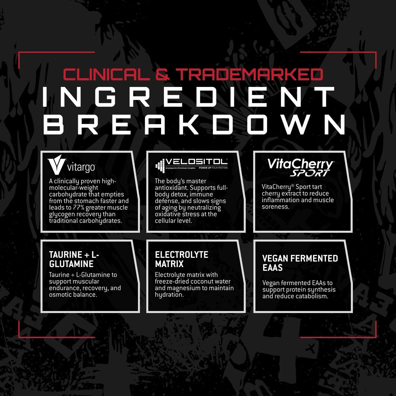 UNMATCHED INTRA™ is engineered to boost muscular endurance, speed recovery, and maximize hydration. It features 25 g of Vitargo®, a patented, fast-digesting carbohydrate clinically shown to replenish glycogen rapidly and fuel training without bloating, trusted by 200+ Olympic athletes. INTRA also delivers 5 g of vegan fermented EAAs in a research-backed ratio to support muscle protein synthesis. Velositol® further amplifies that response, while electrolytes and VitaCherry® Sport enhance hydration, reduce inflammation, and accelerate recovery.
