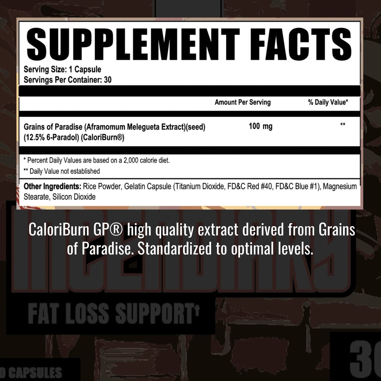 CaloriBurn GP is a high-quality extract derived from Grains of Paradise, specifically standardized to contain optimal levels of 6-Paradol and 6-gingerol. These key compounds have been found to possess thermogenic properties, meaning it can increase the body's heat production and energy expenditure