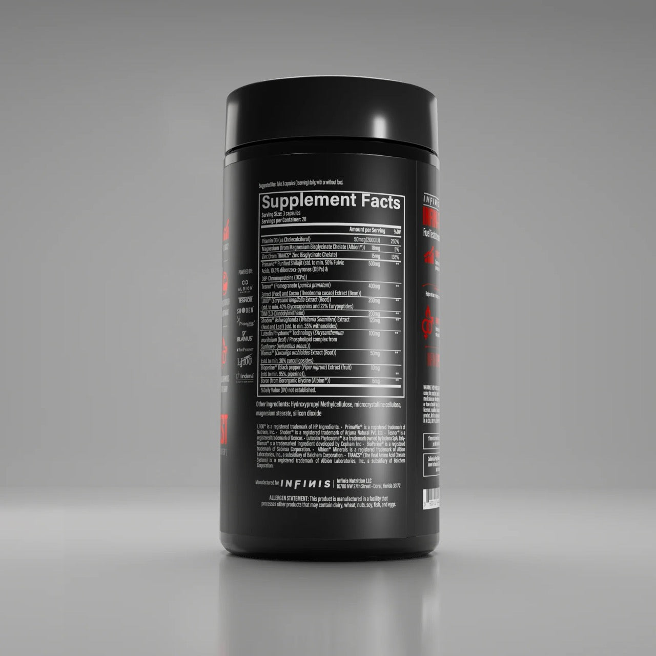 Infinis Nutrition Test Booster was formulated to enhance natural testosterone production, which is essential for significant muscle development, remarkable strength, and enhanced vitality. This test booster aims to foster an optimal hormonal balance that contributes to enhanced overall wellness and health.