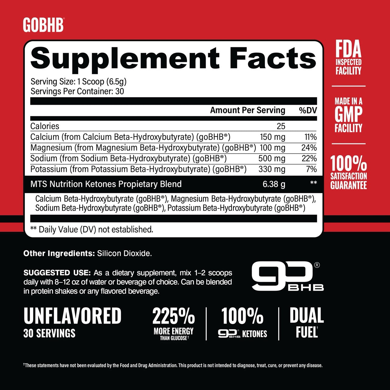 - Sodium (from Sodium Beta-Hydroxybutyrate [goBHB®]): 500 mg (22% DV)